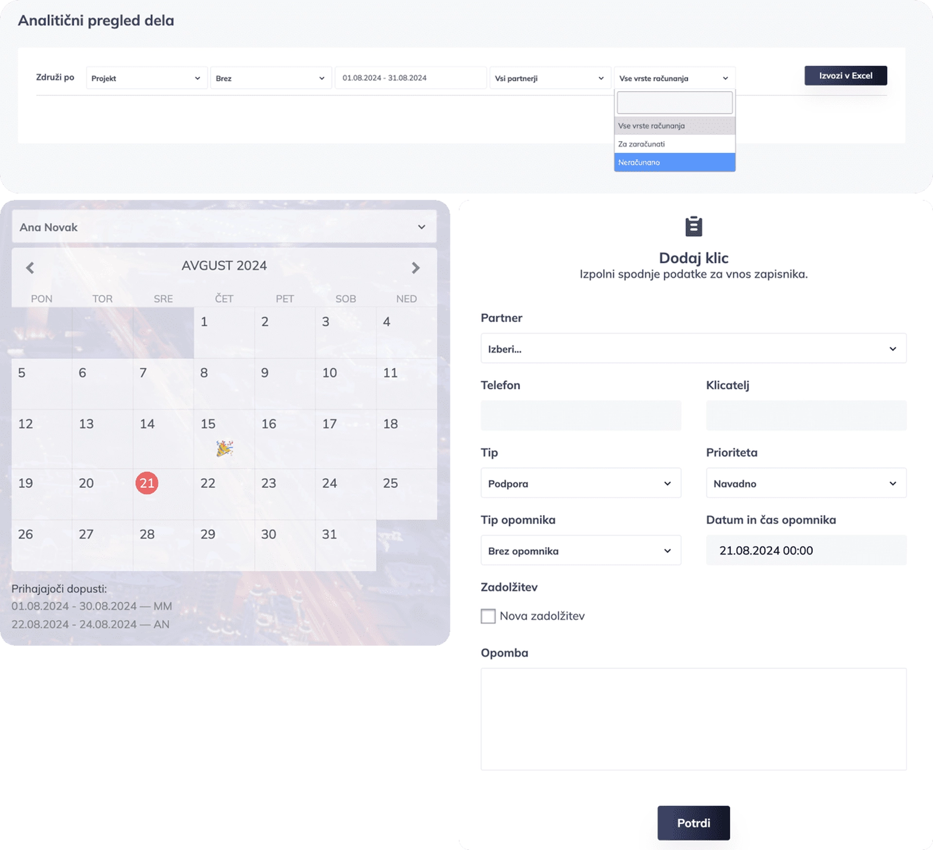 Osredotočite se na bistveno z orodjem za organiziranje in pregled aktivnosti ter z dostopom do vseh pomembnih dokumentov in podatkov.